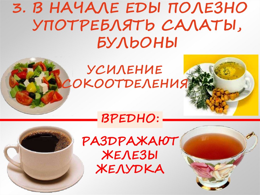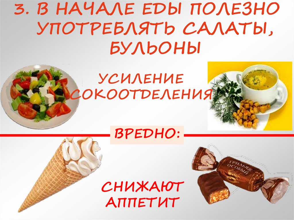 3. В НАЧАЛЕ ЕДЫ ПОЛЕЗНОУПОТРЕБЛЯТЬ САЛАТЫ,