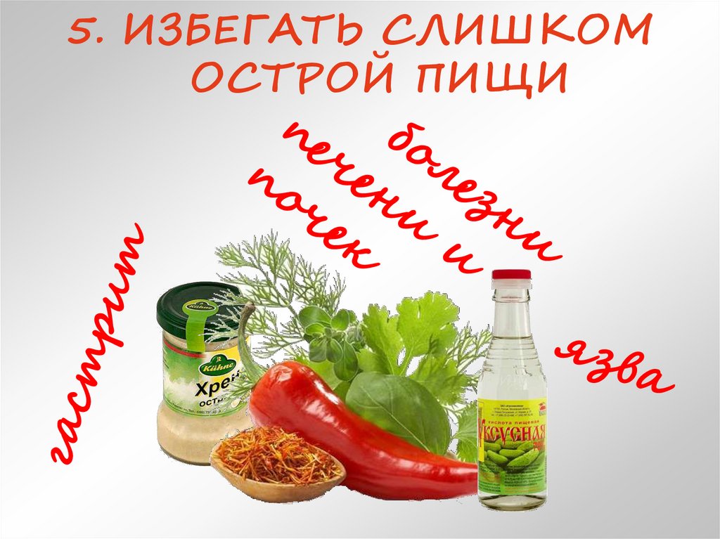 5. ИЗБЕГАТЬ СЛИШКОМОСТРОЙ ПИЩИ