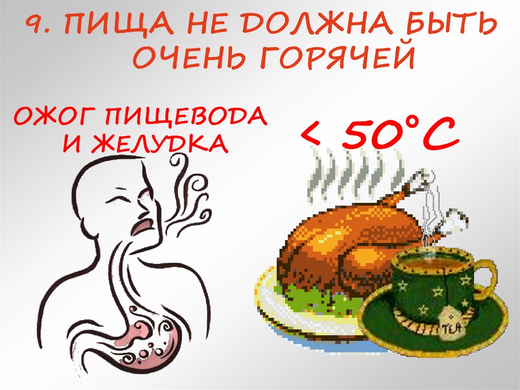 9. ПИЩА НЕ ДОЛЖНА БЫТЬОЧЕНЬ ГОРЯЧЕЙ