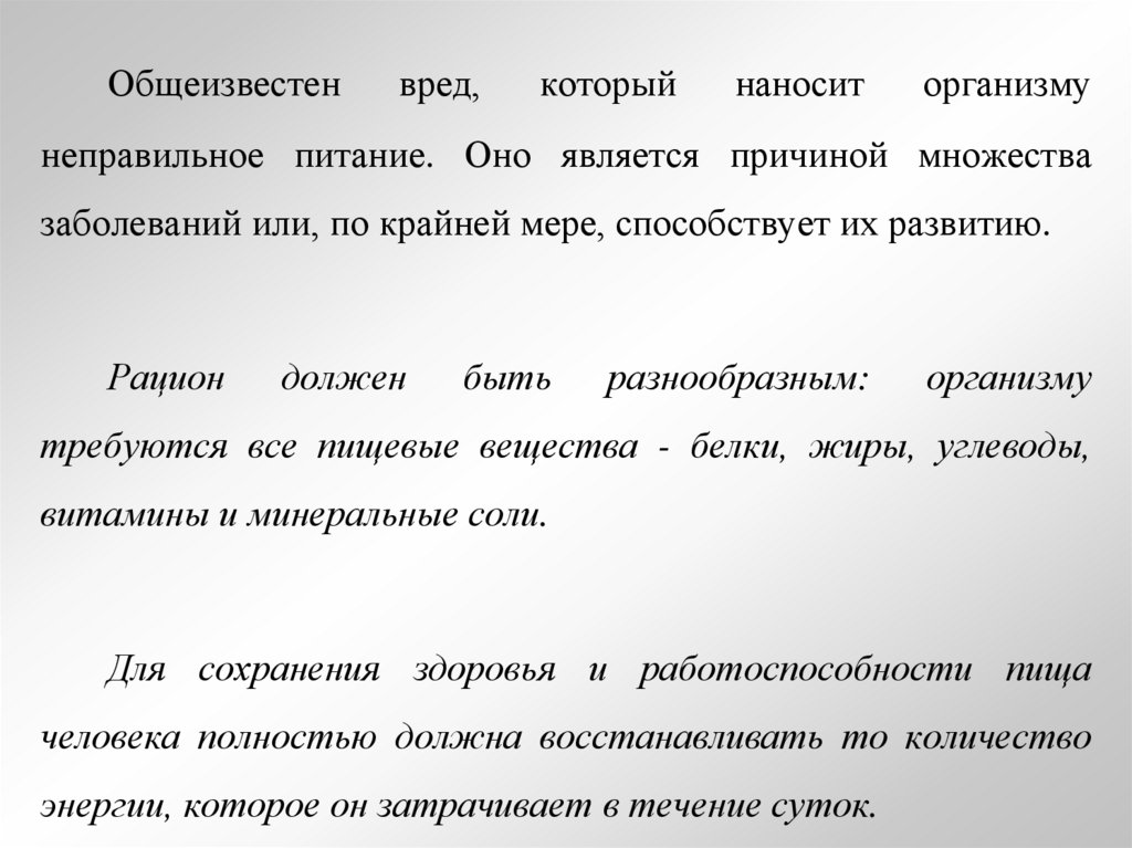 Для сохранения здоровья и работоспособности пища