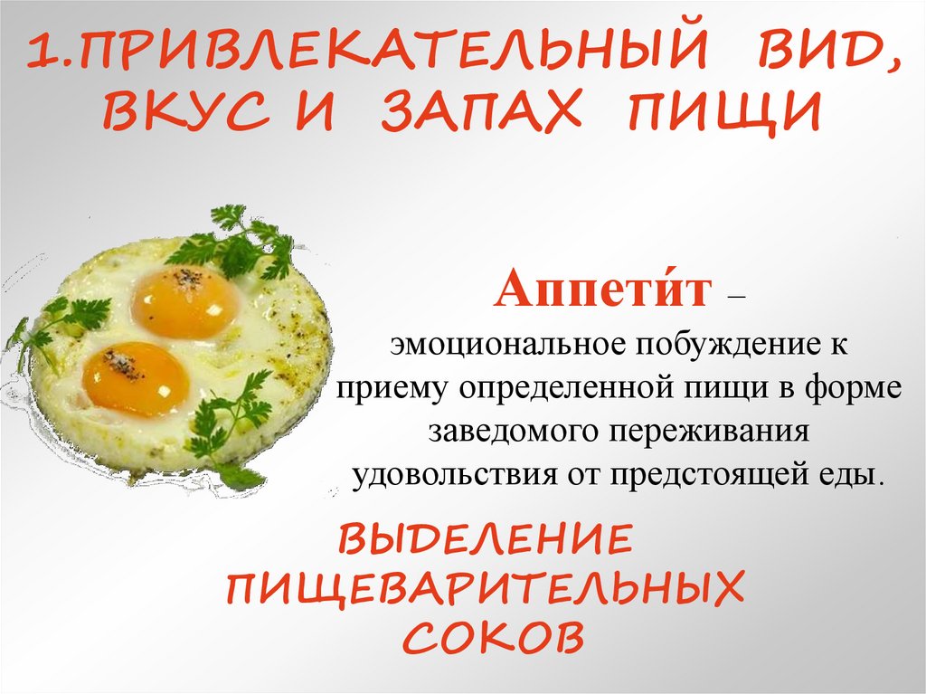 1.ПРИВЛЕКАТЕЛЬНЫЙ ВИД,ВКУС И ЗАПАХ ПИЩИ