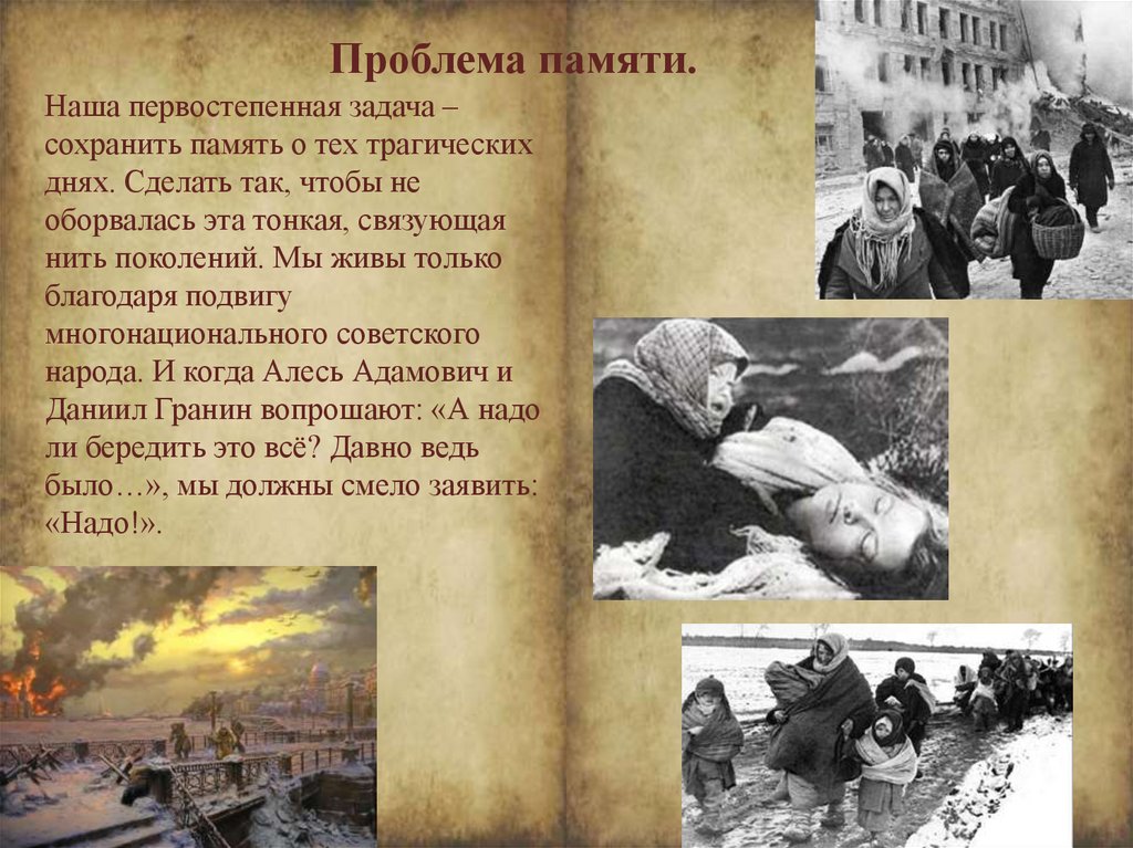 Используемые источники:•Алесь Адамович, Даниил Гранин. Блокадная книга [Электронный