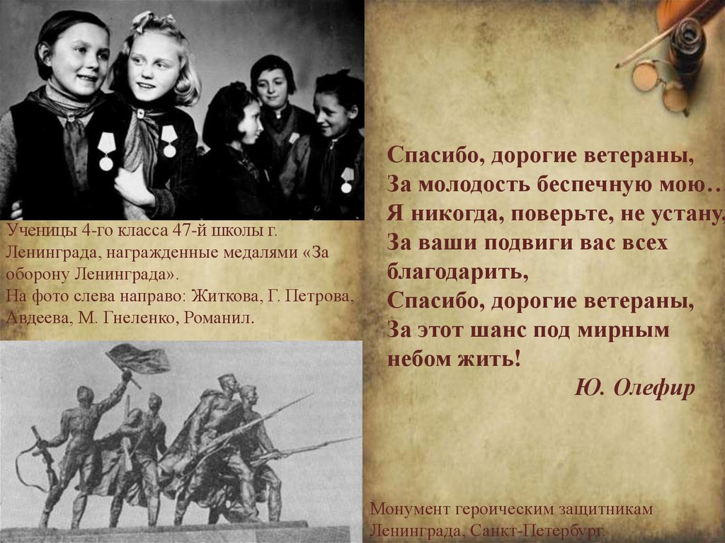Ученицы 4-го класса 47-й школы г.Ленинграда, награжденные медалями «За
