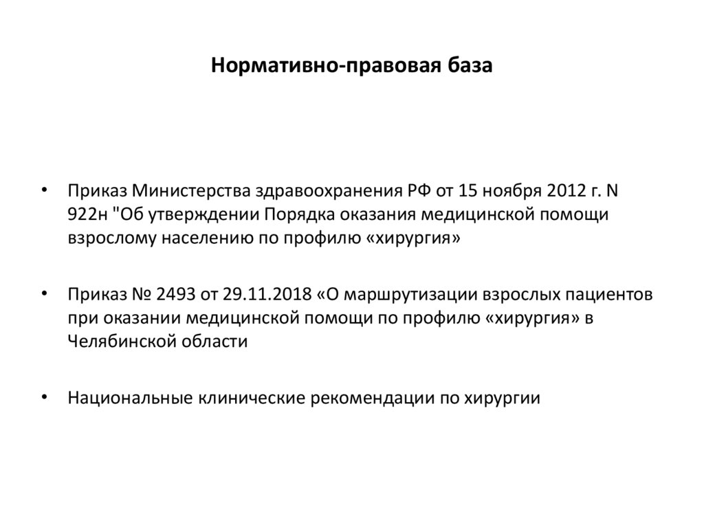Нормативно-правовая база• Приказ Министерства здравоохранения РФ от 15 ноября 2012 г. N