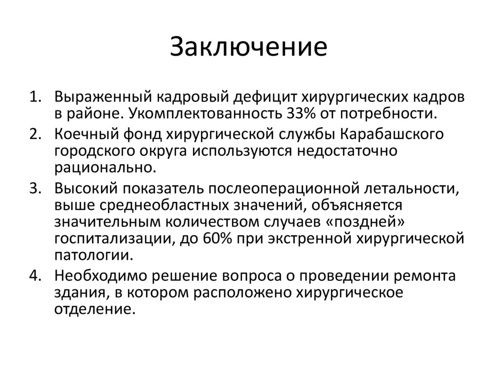 Заключение1. Выраженный кадровый дефицит хирургических кадров