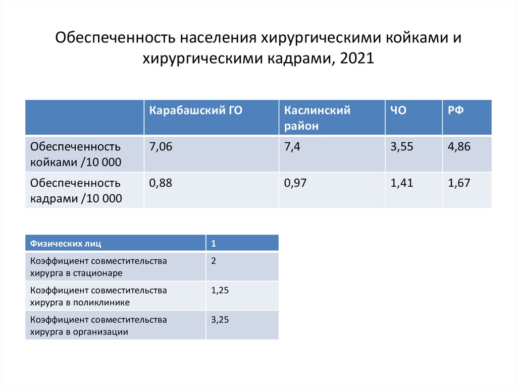 Обеспеченность населения хирургическими койками ихирургическими кадрами, 2021