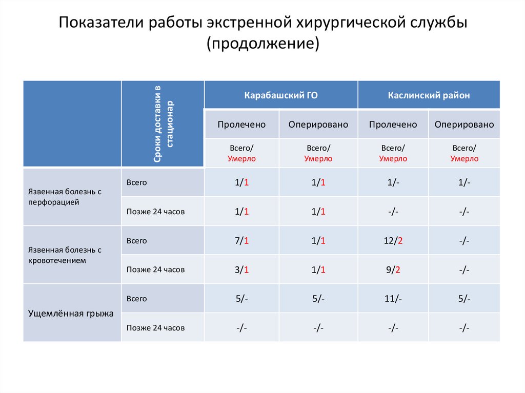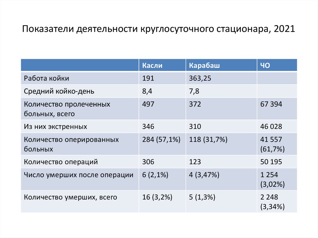 ОБ ИТОГАХ РАБОТЫ ХИРУРГИЧЕСКОЙСЛУЖБЫ КАРАБАШСКОГО ГОРОДСКОГО