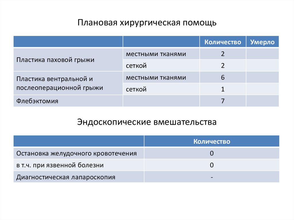 Плановая хирургическая помощьКоличество