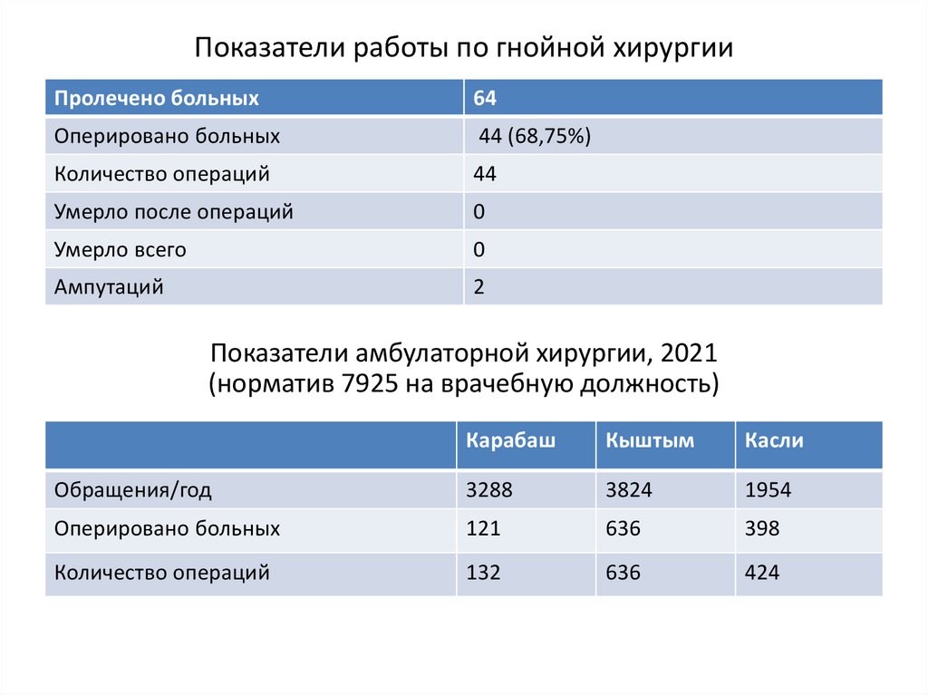 Показатели работы по гнойной хирургииПролечено больных