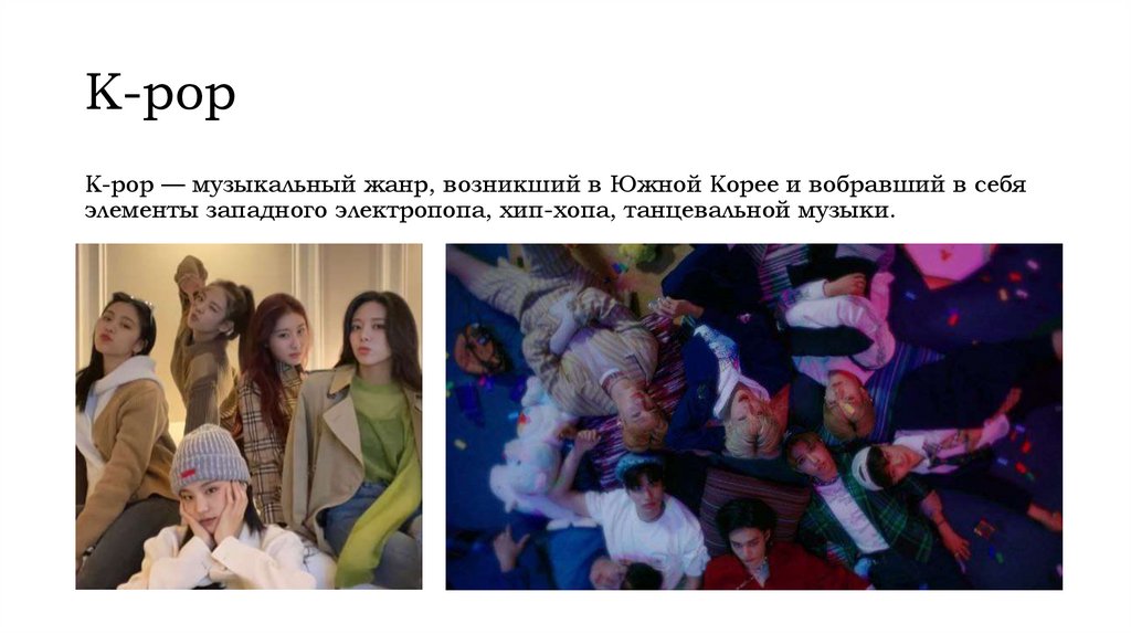 K-popK-pop — музыкальный жанр, возникший в Южной Корее и вобравший в себя