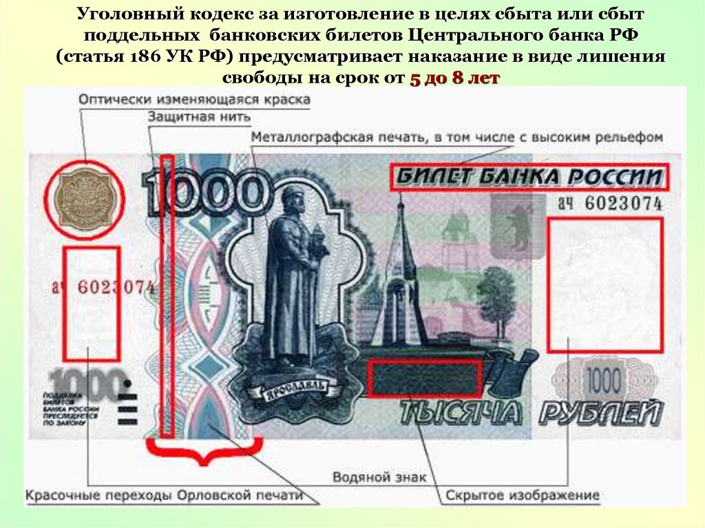 Уголовный кодекс за изготовление в целях сбыта или сбытподдельных банковских билетов Центрального банка РФ
