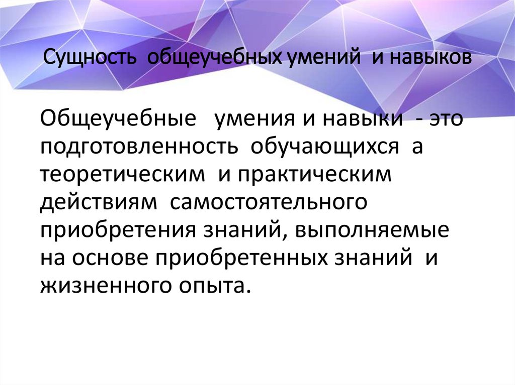 Сущность общеучебных умений и навыковОбщеучебные умения и навыки - это