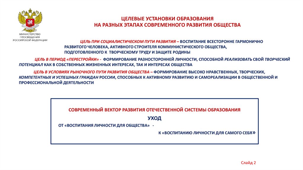 ЦЕЛЕВЫЕ УСТАНОВКИ ОБРАЗОВАНИЯНА РАЗНЫХ ЭТАПАХ СОВРЕМЕННОГО РАЗВИТИЯ ОБЩЕСТВА