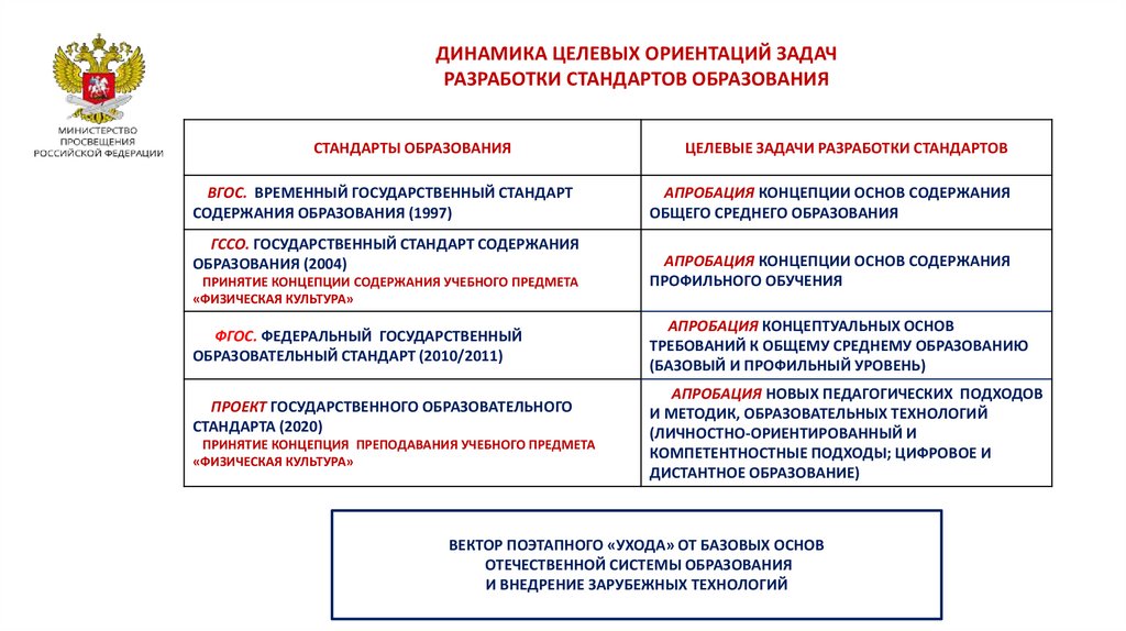 ДИНАМИКА ЦЕЛЕВЫХ ОРИЕНТАЦИЙ ЗАДАЧРАЗРАБОТКИ СТАНДАРТОВ ОБРАЗОВАНИЯ