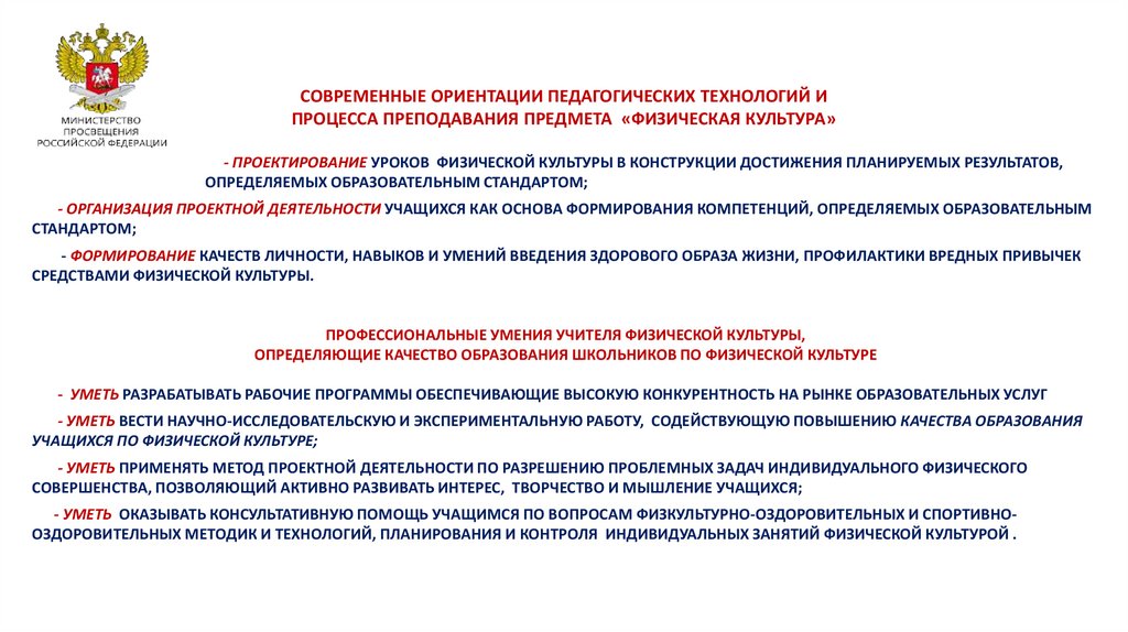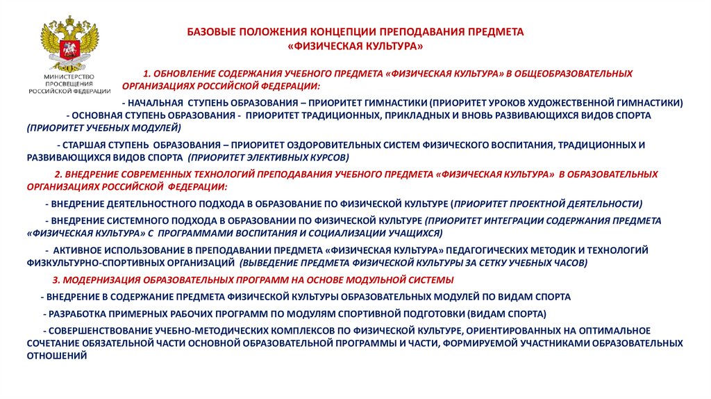 1. МОДЕРНИЗАЦИЯ СОДЕРЖАНИЯ И ТЕХНОЛОГИЙ ПРЕПОДАВАНИЯ УЧЕБНОГО ПРЕДМЕТА «ФИЗИЧЕСКАЯ КУЛЬТУРА» В