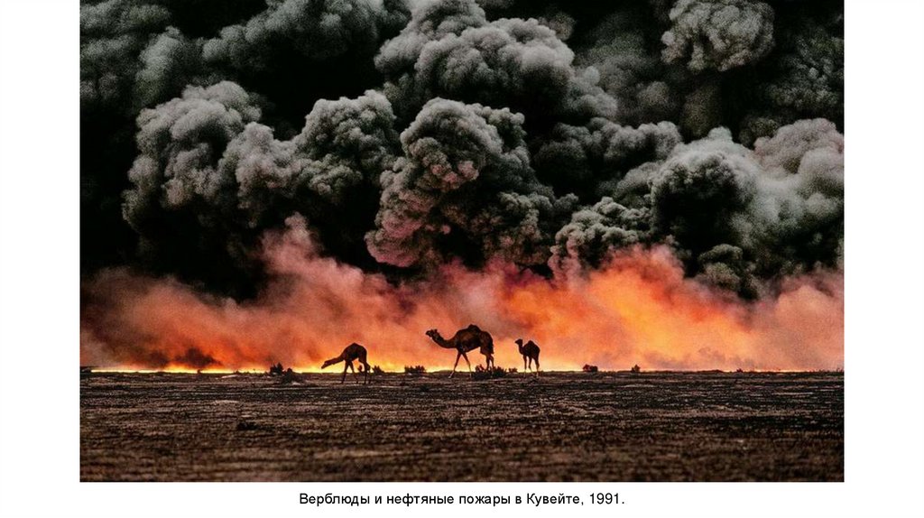 Верблюды и нефтяные пожары в Кувейте, 1991.22.
