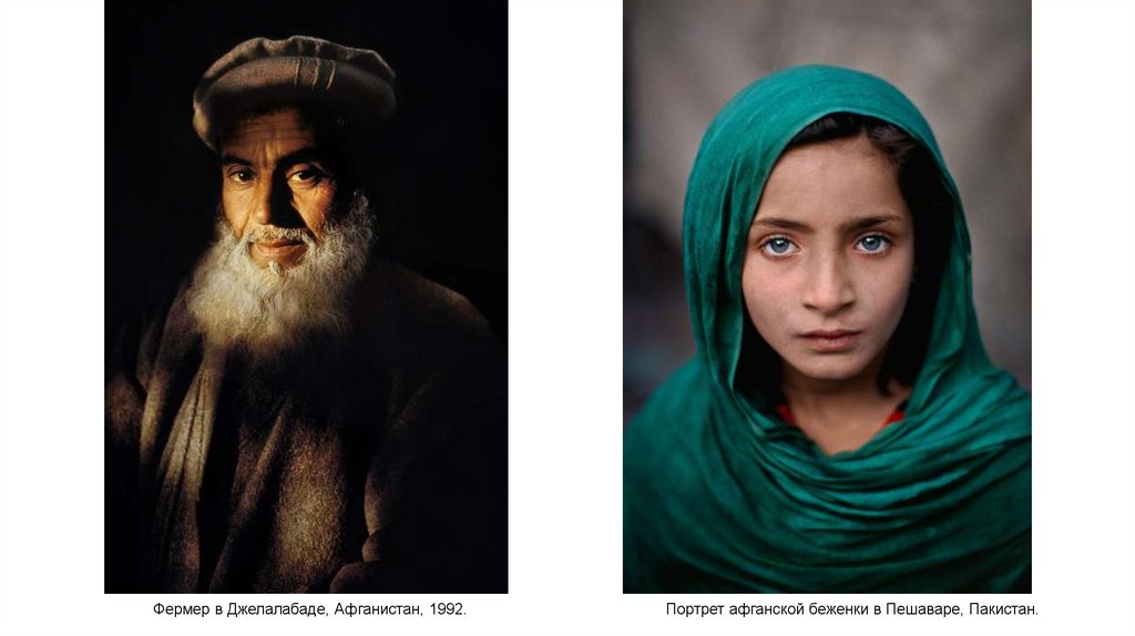 Фермер в Джелалабаде, Афганистан, 1992.Портрет афганской беженки в Пешаваре, Пакистан.