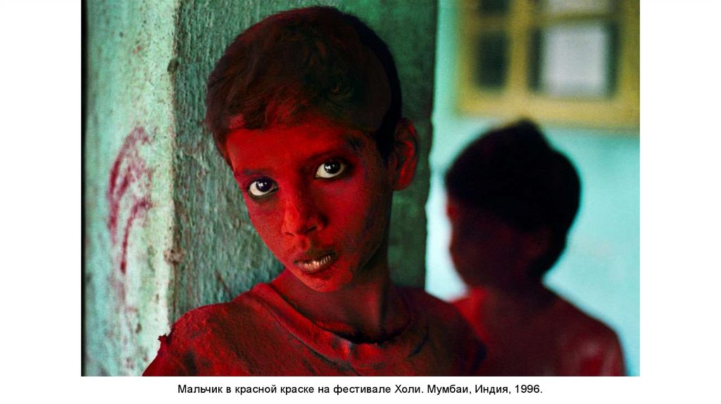 Мальчик в красной краске на фестивале Холи. Мумбаи, Индия, 1996.11.