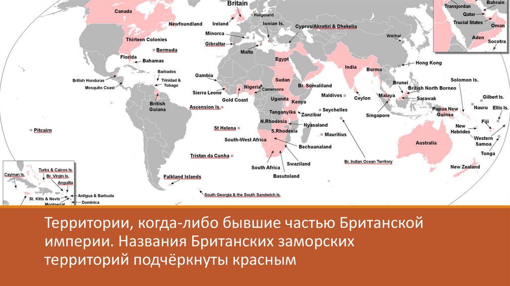 Территории, когда-либо бывшие частью Британскойимперии. Названия Британских заморских