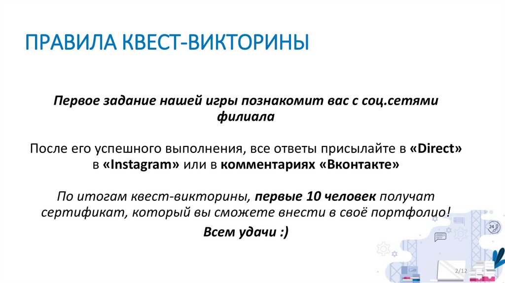 ПРАВИЛА КВЕСТ-ВИКТОРИНЫПервое задание нашей игры познакомит вас с соц.сетями