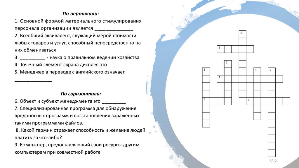 По вертикали:1. Основной формой материального стимулирования