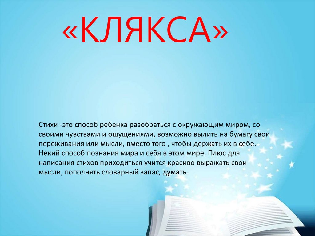 «КЛЯКСА»Стихи -это способ ребенка разобраться с окружающим миром, со