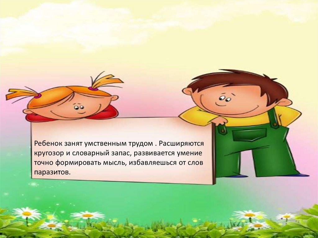 Ребенок занят умственным трудом . Расширяютсякругозор и словарный запас, развивается умение