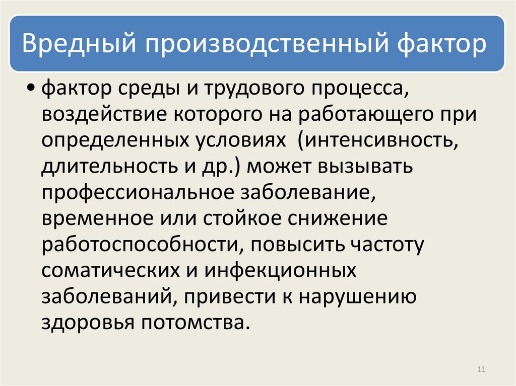 Вредный производственный фактор• фактор среды и трудового процесса,