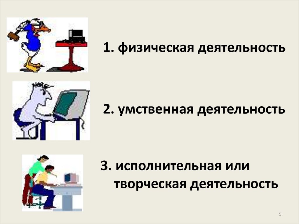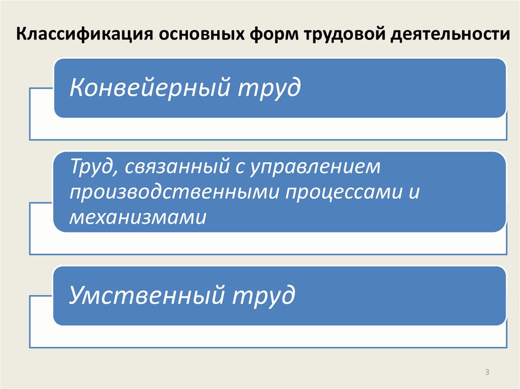 Классификация основных форм трудовой деятельностиТруд, требующий большой