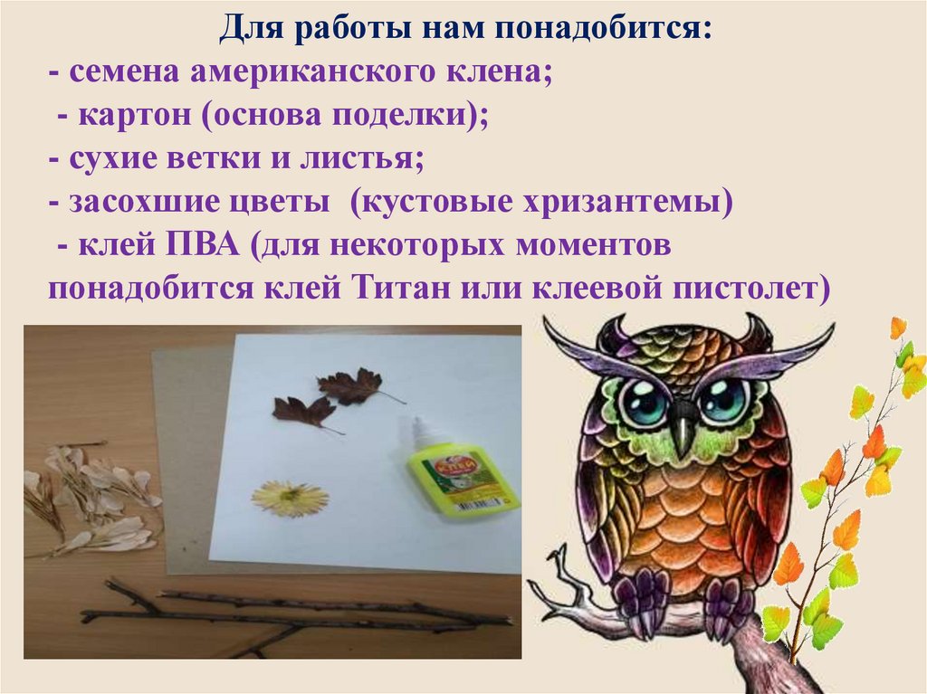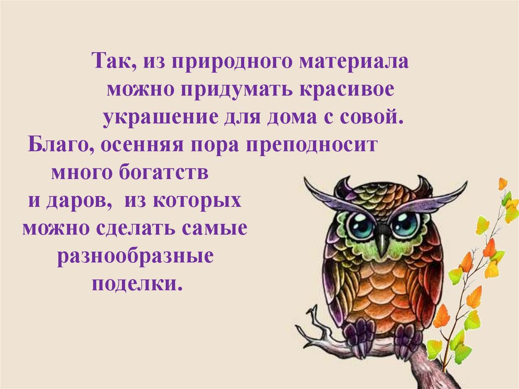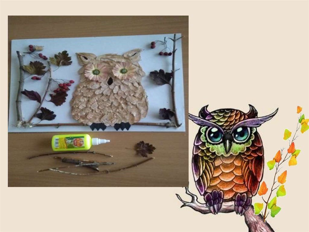 поделку – осеннюю композицию «Сова»,