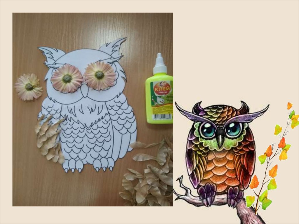 2. На веточку приклеиваем изображение совы