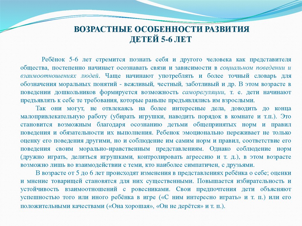 ВОЗРАСТНЫЕ ОСОБЕННОСТИ РАЗВИТИЯДЕТЕЙ 5-6 ЛЕТ