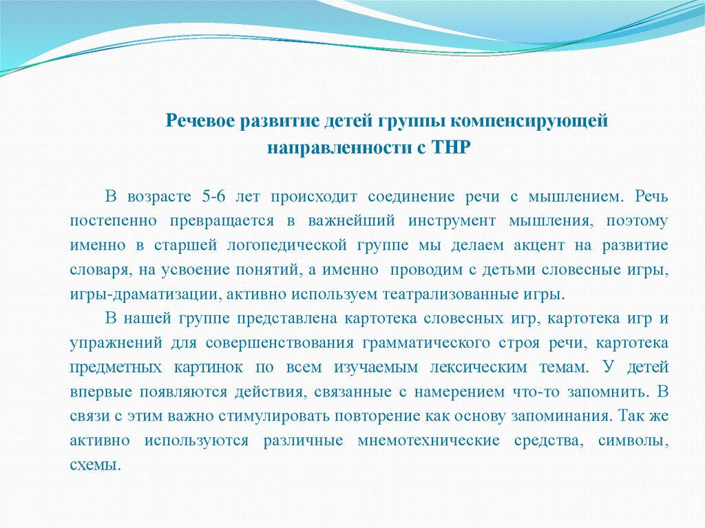 Речевое развитие детей группы компенсирующейнаправленности с ТНР