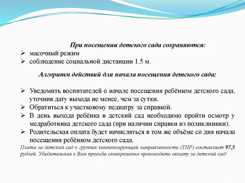 посещения ребёнком детского сада.