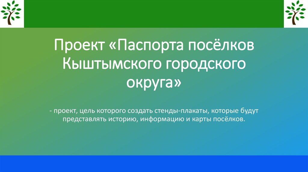 Проект «Паспорта посёлковКыштымского городского