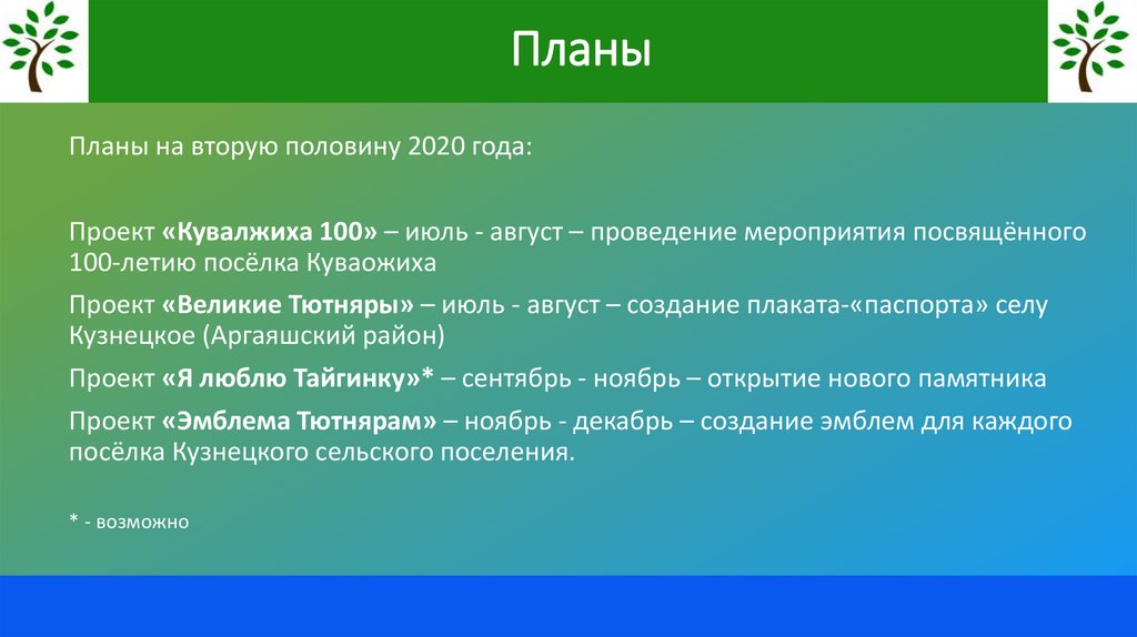 ПланыПланы на вторую половину 2020 года: