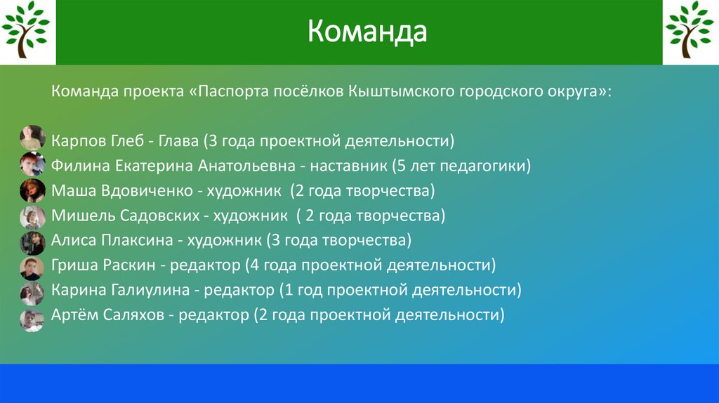 КомандаКоманда проекта «Паспорта посёлков Кыштымского городского округа»: