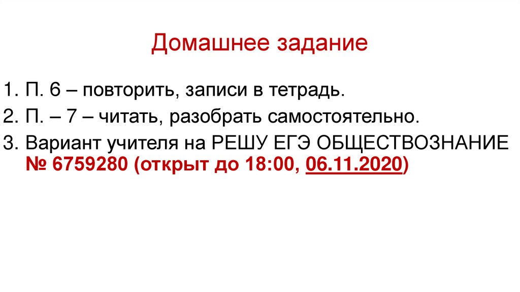 Домашнее задание1. П. 6 – повторить, записи в тетрадь.
