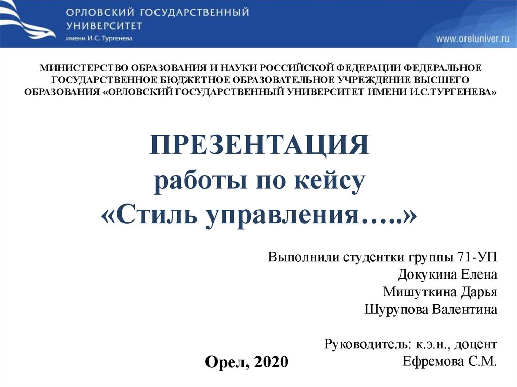 ОБРАЗОВАНИЯ «ОРЛОВСКИЙ ГОСУДАРСТВЕННЫЙ УНИВЕРСИТЕТ ИМЕНИ И.С.ТУРГЕНЕВА»