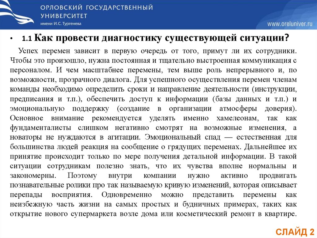 большинства людей реакция на сообщение о грядущих переменах. Дальнейшее их