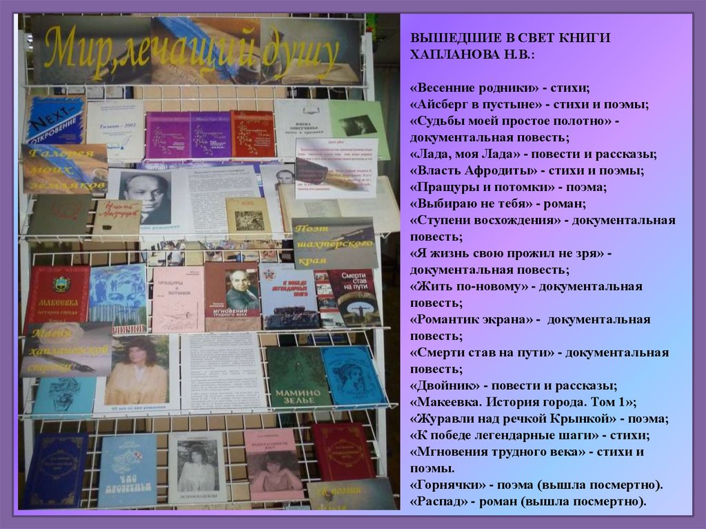ВЫШЕДШИЕ В СВЕТ КНИГИХАПЛАНОВА Н.В.: