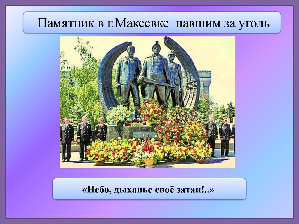 Памятник в г.Макеевке павшим за уголь«Небо, дыханье своё затаи!..»