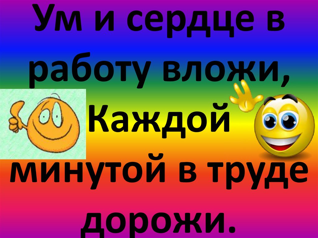 Ум и сердце в работу вложи, Каждой минутой в труде дорожи
