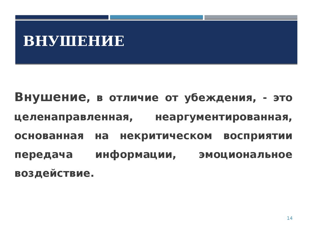 ВНУШЕНИЕВнушение, в отличие от убеждения, - это