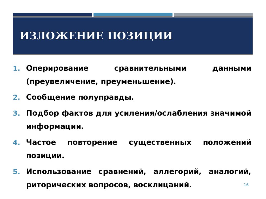 ПОЗИЦИЯ ПО ДЕЛУ1. Логичность изложения информации.