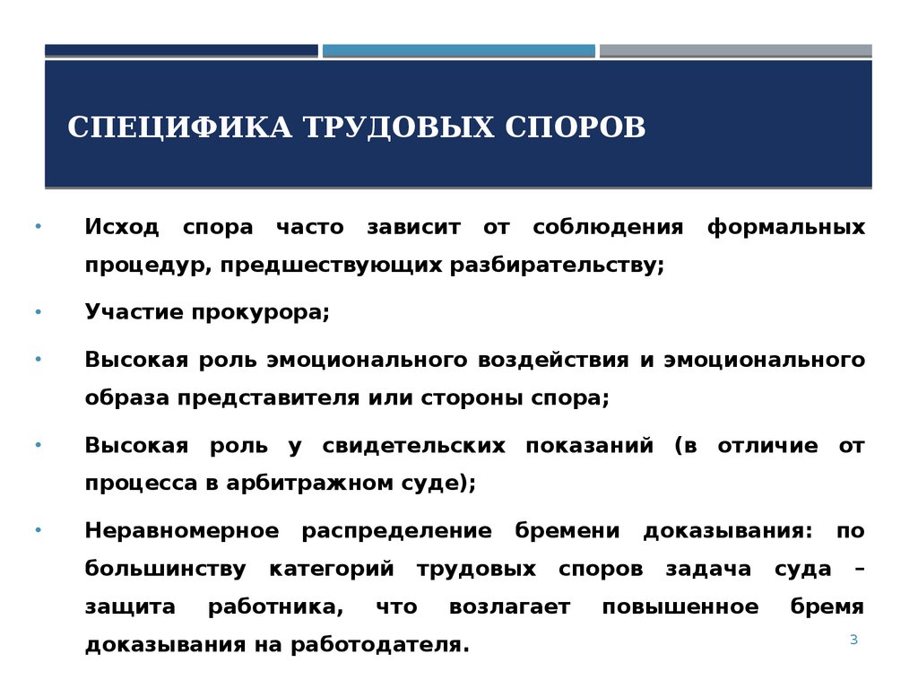 СПЕЦИФИКА ТРУДОВЫХ СПОРОВИсход