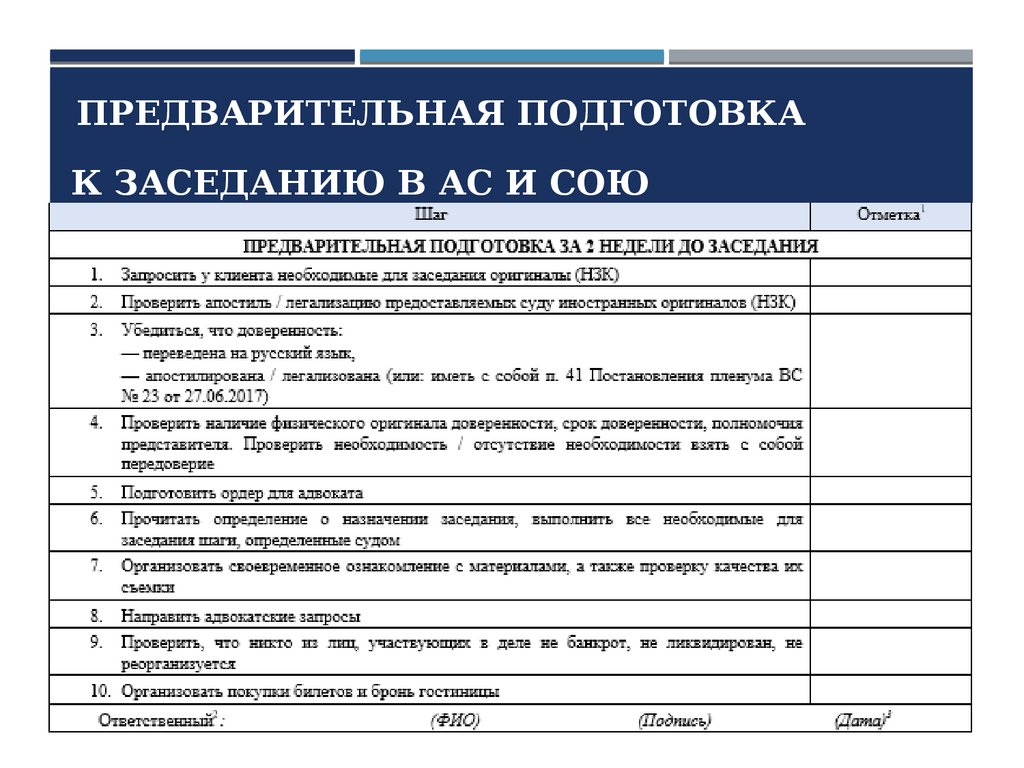 ПРЕДВАРИТЕЛЬНАЯ ПОДГОТОВКАК ЗАСЕДАНИЮ В АС И СОЮ