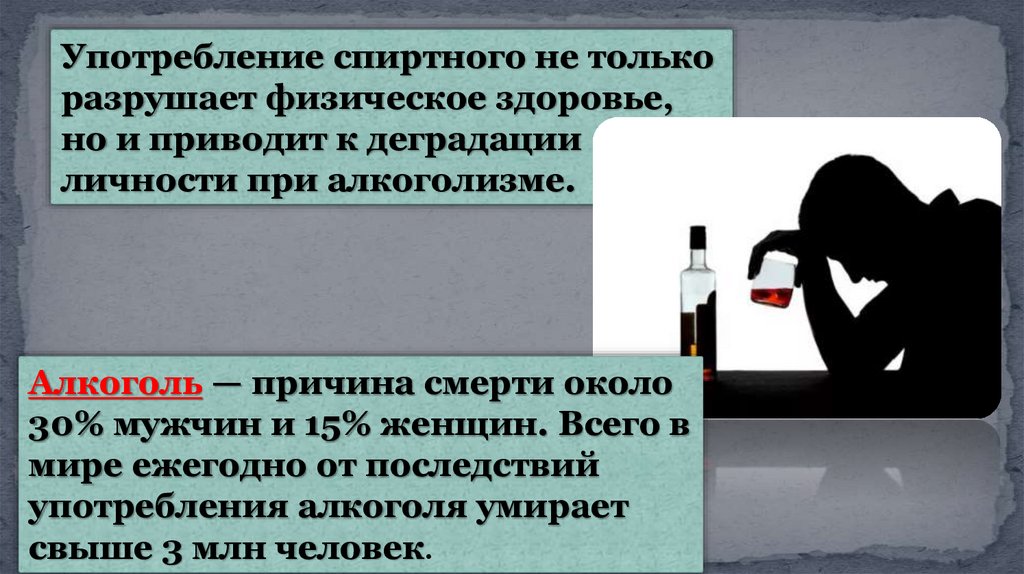 Употребление спиртного не толькоразрушает физическое здоровье,