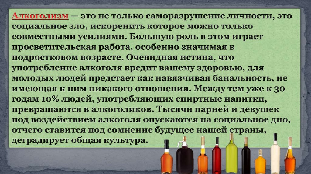 Алкоголизм и его влияние на развитие здоровой личности