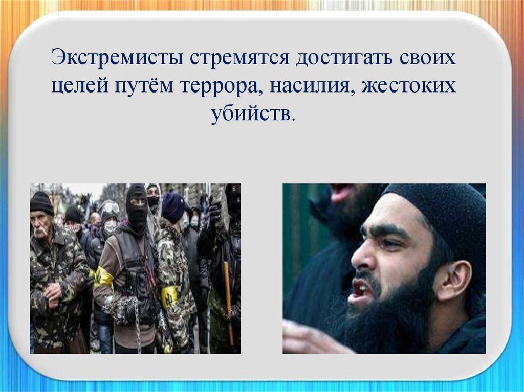 Экстремисты стремятся достигать своихцелей путём террора, насилия, жестоких